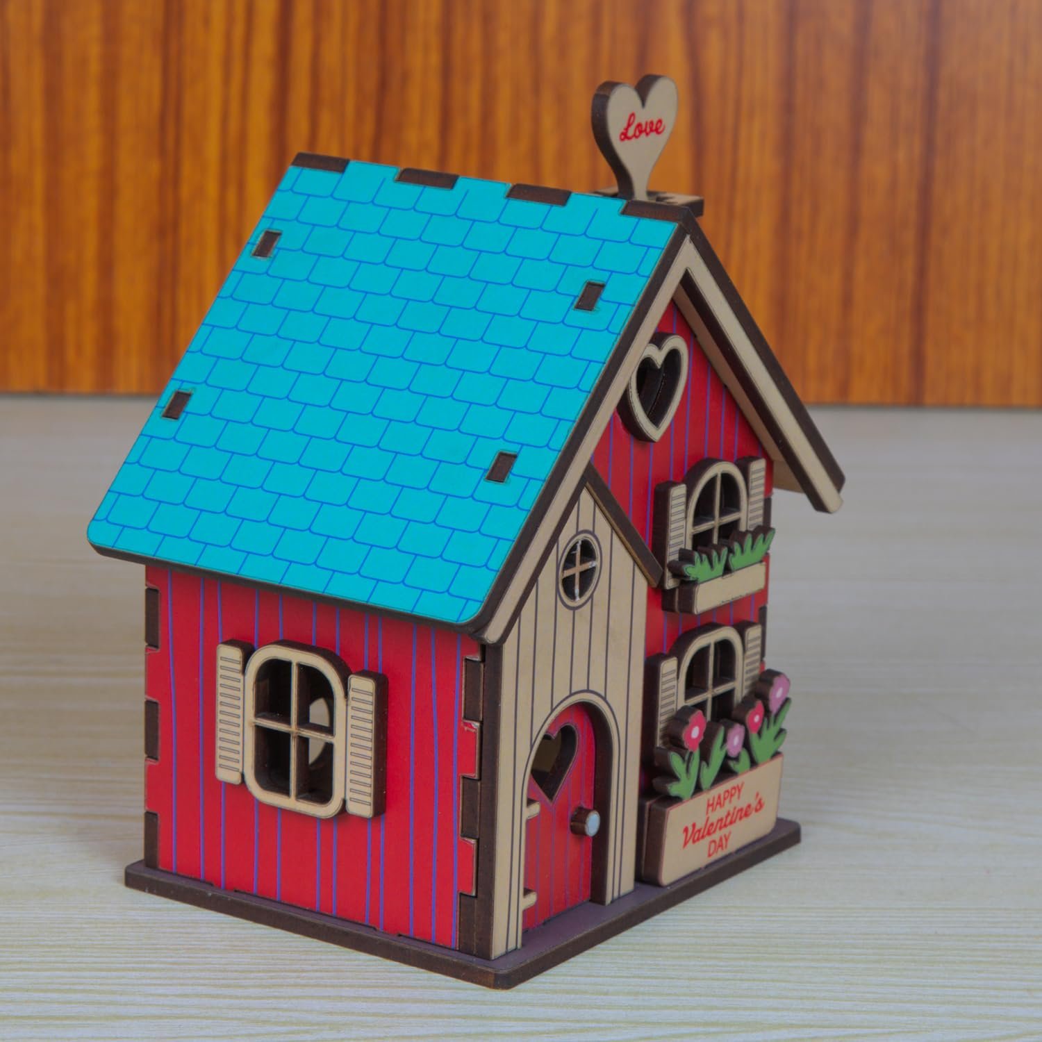 Crafted from high-quality engineered wood, this Valentine Day House features precision laser-cut detailing for clean lines and flawless finishing.