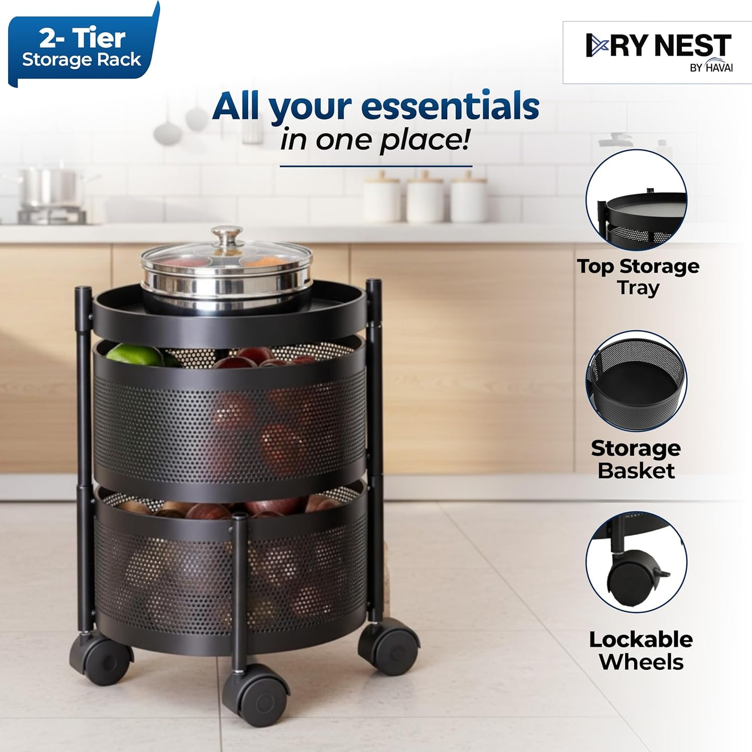 Moreover, it works perfectly as a corner rotating trolley, pantry organizer, and under counter storage solution. Whether you live in a compact apartment or own a modular kitchen, this rotating utility cart transforms unused space into organized storage.